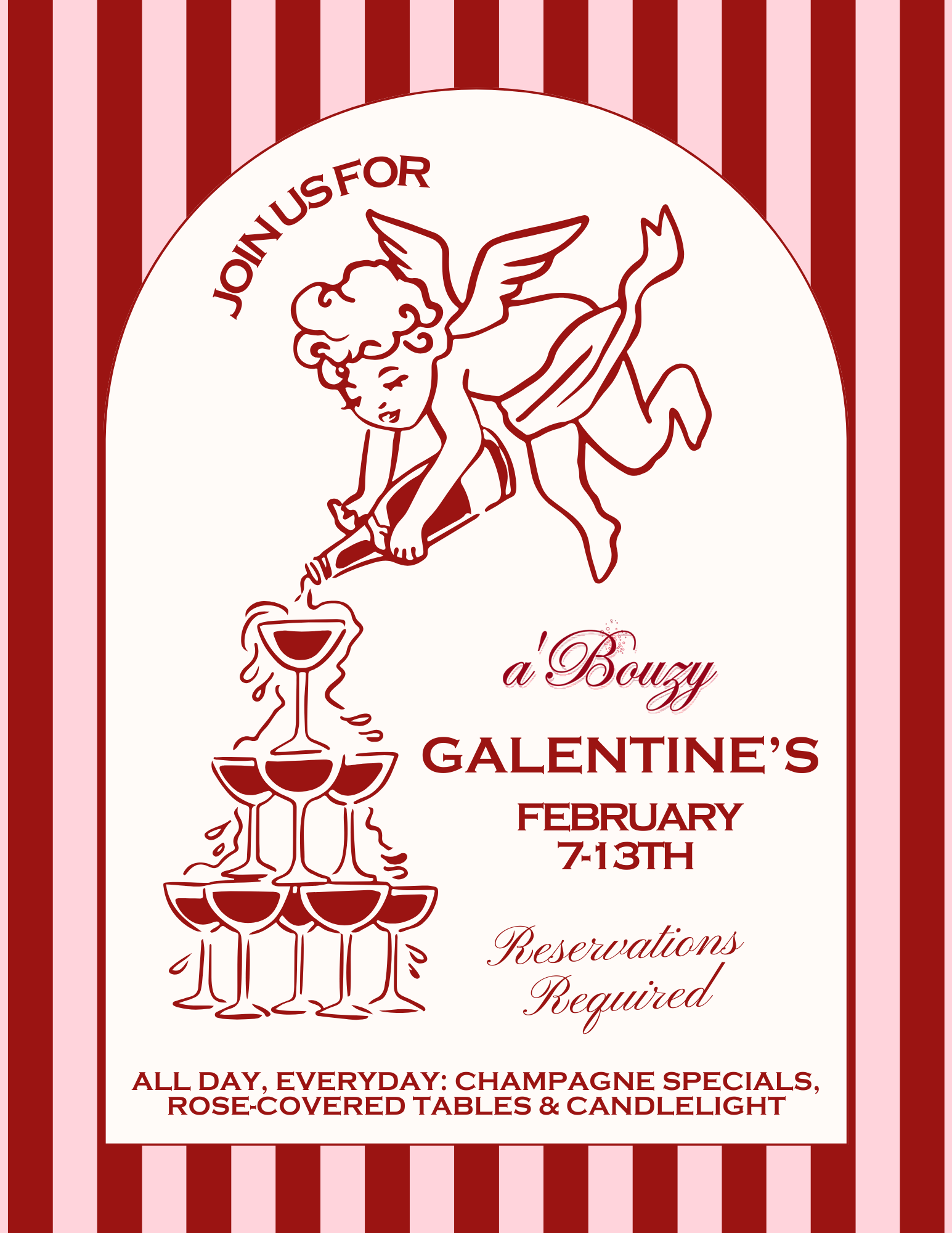 Galentine's: Champagne Specials February 07, 2026 until February 13, 2026 https://www.opentable.com/r/abouzy-houston