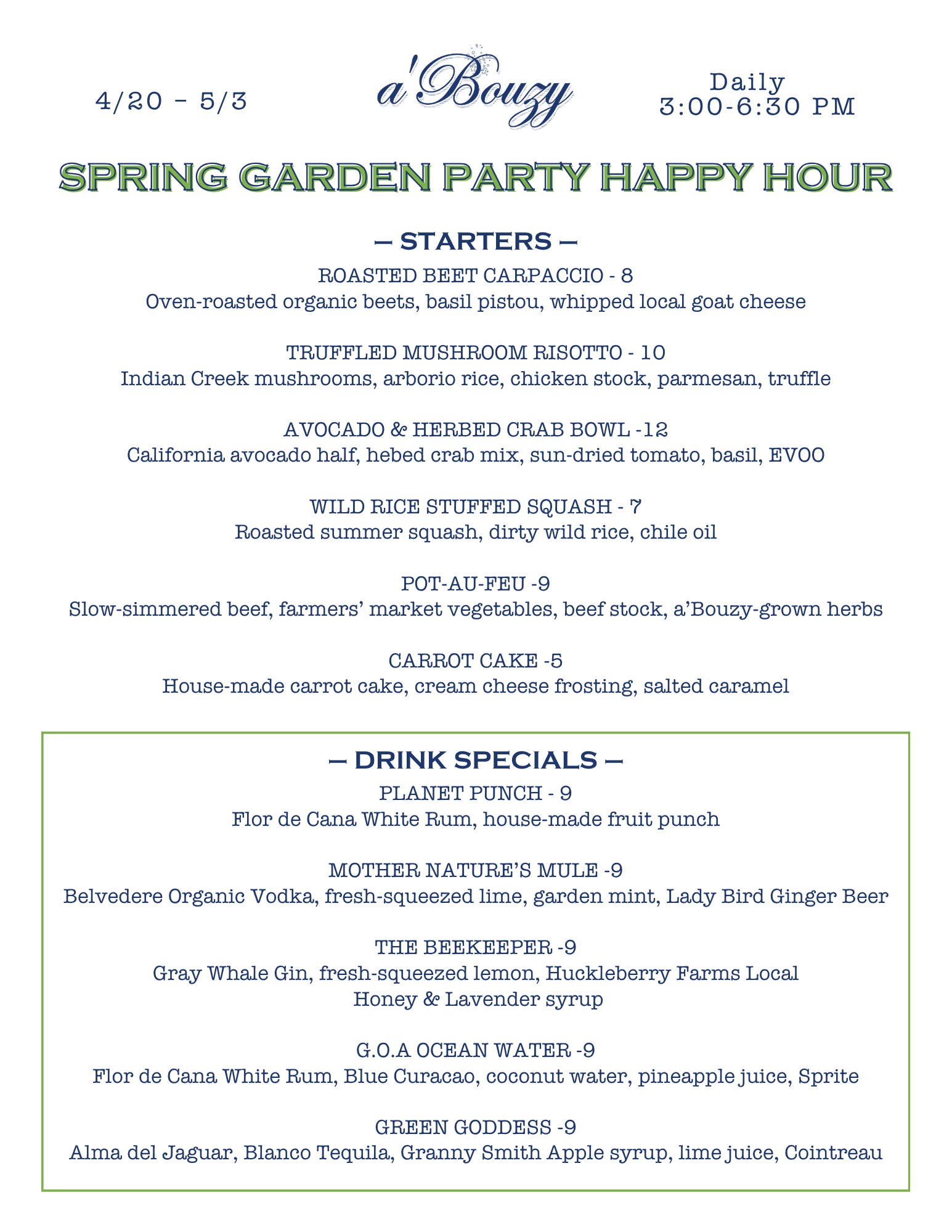 - Spring Garden Party Happy Hour